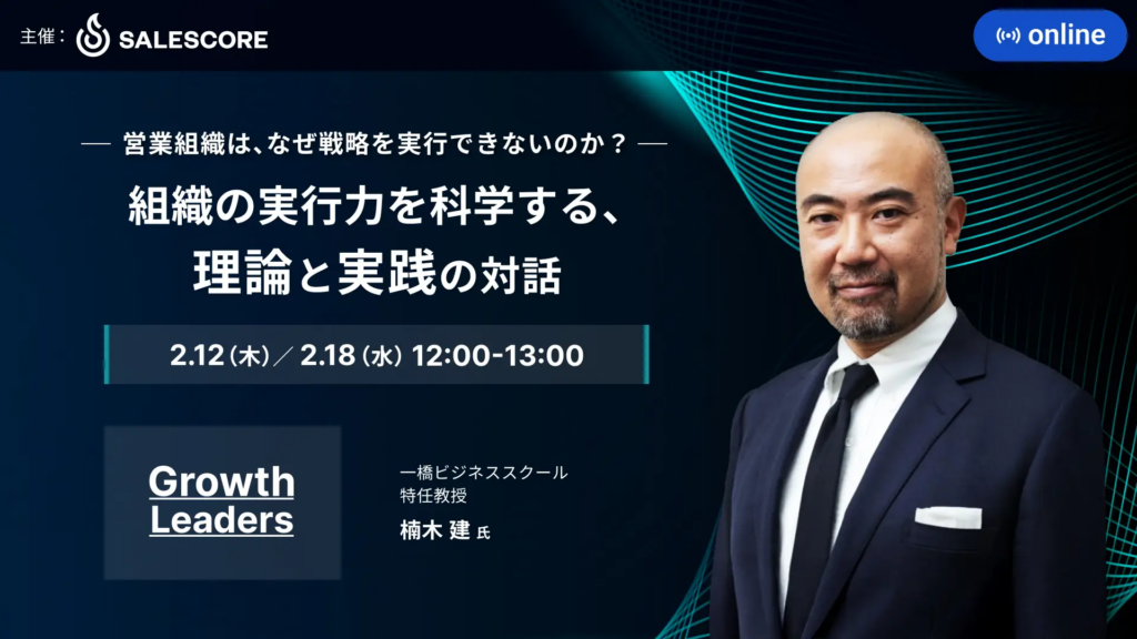 一橋ビジネススクール 特任教授・楠木 建 氏 登壇!営業組織は、なぜ戦略を実行できないのか?理論と実践の対話で「戦略と実行の断絶」に迫る|SALESCORE『Growth Leaders Vol.5』